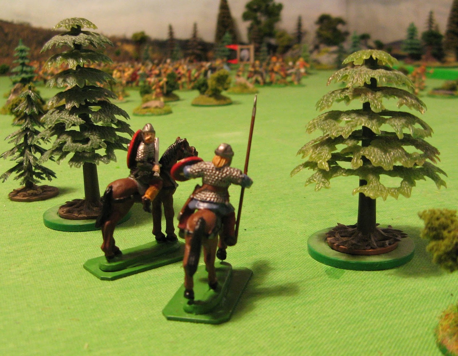 The defenders of Rjukan man the pallisade wall as the attackers come into view out of the forest ....